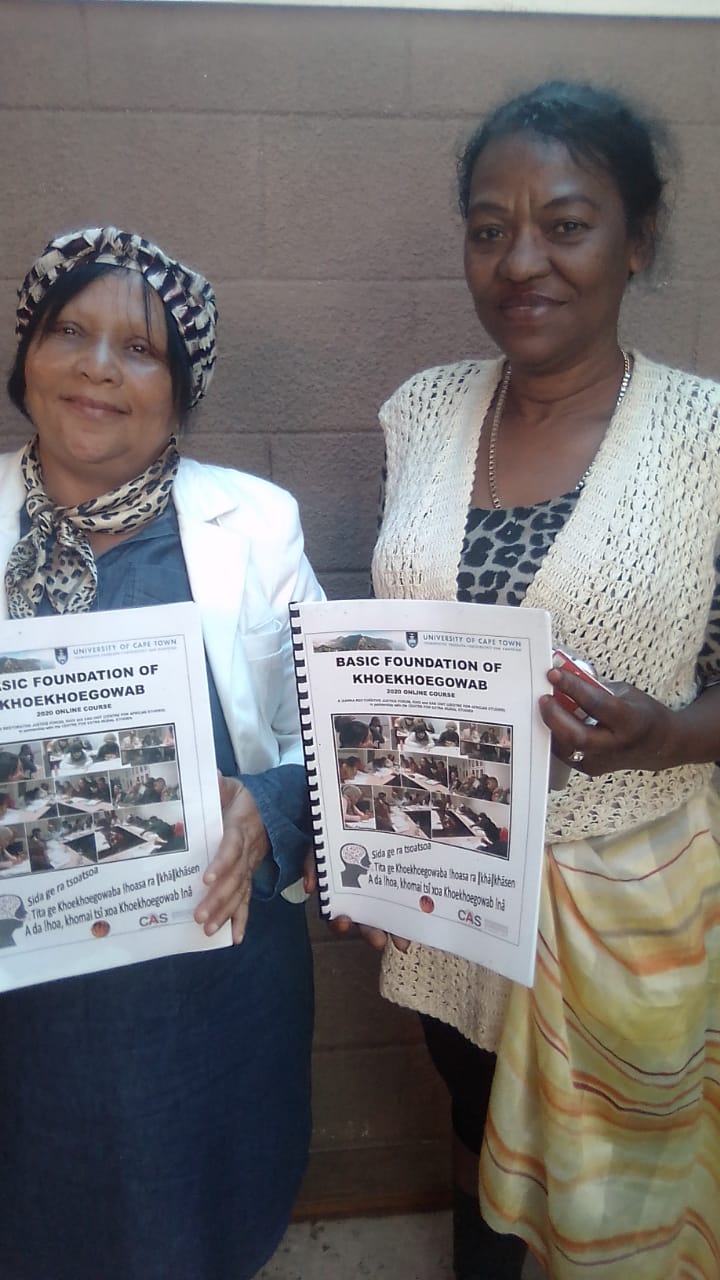 In 2020, under Covid-19 conditions, this was the first online foundational certificated Khoekhoegowab course offered in higher education in South Africa, based on the CILT Lockdown blended teaching and learning model experience at UCT over the past 9 months. It has not been easy as the students come from the most deprived areas on the Cape Flats and there are immense challenges with resources in a 'social distancing' teaching context. The huge costs of data and technical support in a Covid-context are a significant challenge and we hope to attract more funding in this regard to sustain this important project for the community.