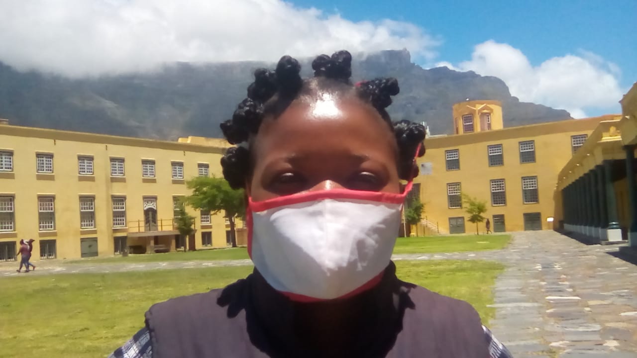Below: A/Xarra Youth Commission Chair, Robyn Humphreys, assisting with the administration of the Khoekhoegowab course at the Cape of Good Hope Castle during Covid-19.