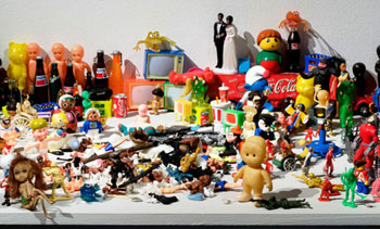Joanne Bloch's project uses the collection based in the Manuscripts and Archives Department at UCT to explore various issues relating to objects, collecting and designating taxonomies, as well as the often arbitrary attribution of value to these collections. For the exhibition, she presents two installations that, when read together, seek to understand those complex politics of value. The first is a section of Bloch's personal collection of thousands of (mostly) plastic toys, The People, amassed over decades. The second shows a haphazard and non-cohesive collection of artefacts from the UCT Manuscripts and Archives Department. Both installations are thrown into question by a third component, Bloch's pseudo-priceless golden object collection.