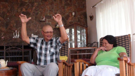 As we did last year, we begin in Brandvlei by arranging with the Van Zyls another reel dance performance. The following day, Magdalena and her brother, Klaas van Zyl, come to our guesthouse to tell stories, which we record on video.