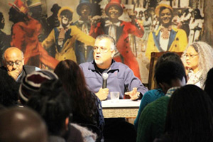 The crowd gathered at the District Six Homecoming Centre in Cape Town for the final discussion session of