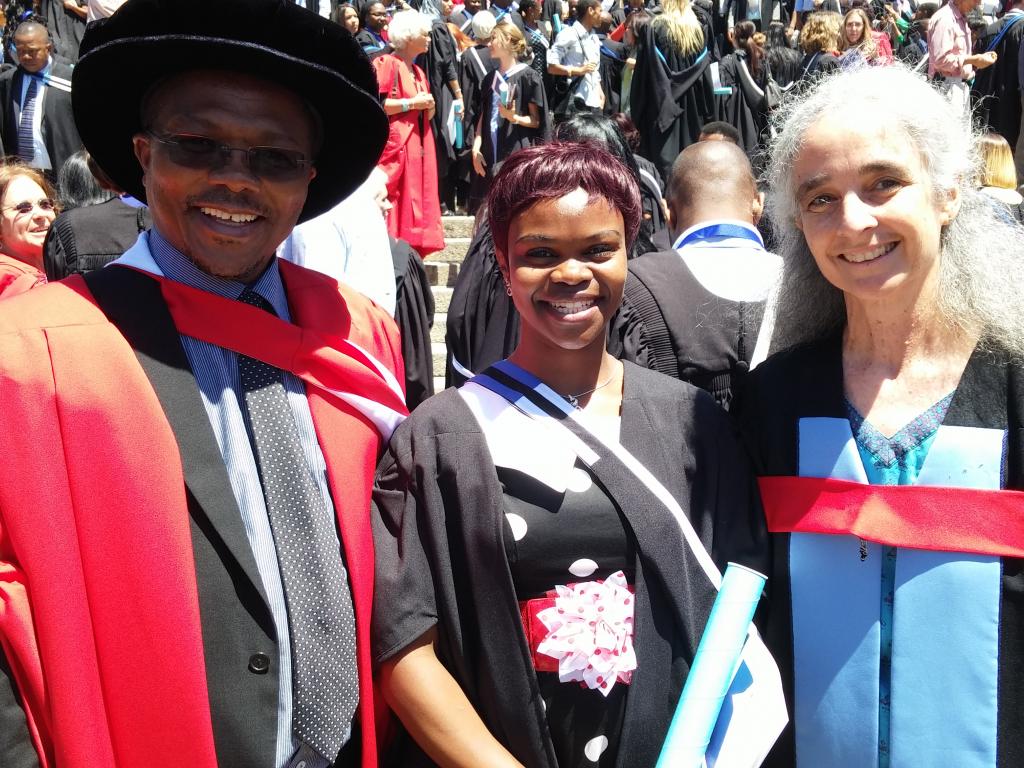 Pictured above L-R: Dean of Humanities, Professor Sakhela Buhlungu, Michelle Mzamo with UCT Council member, Debbie Budlender.