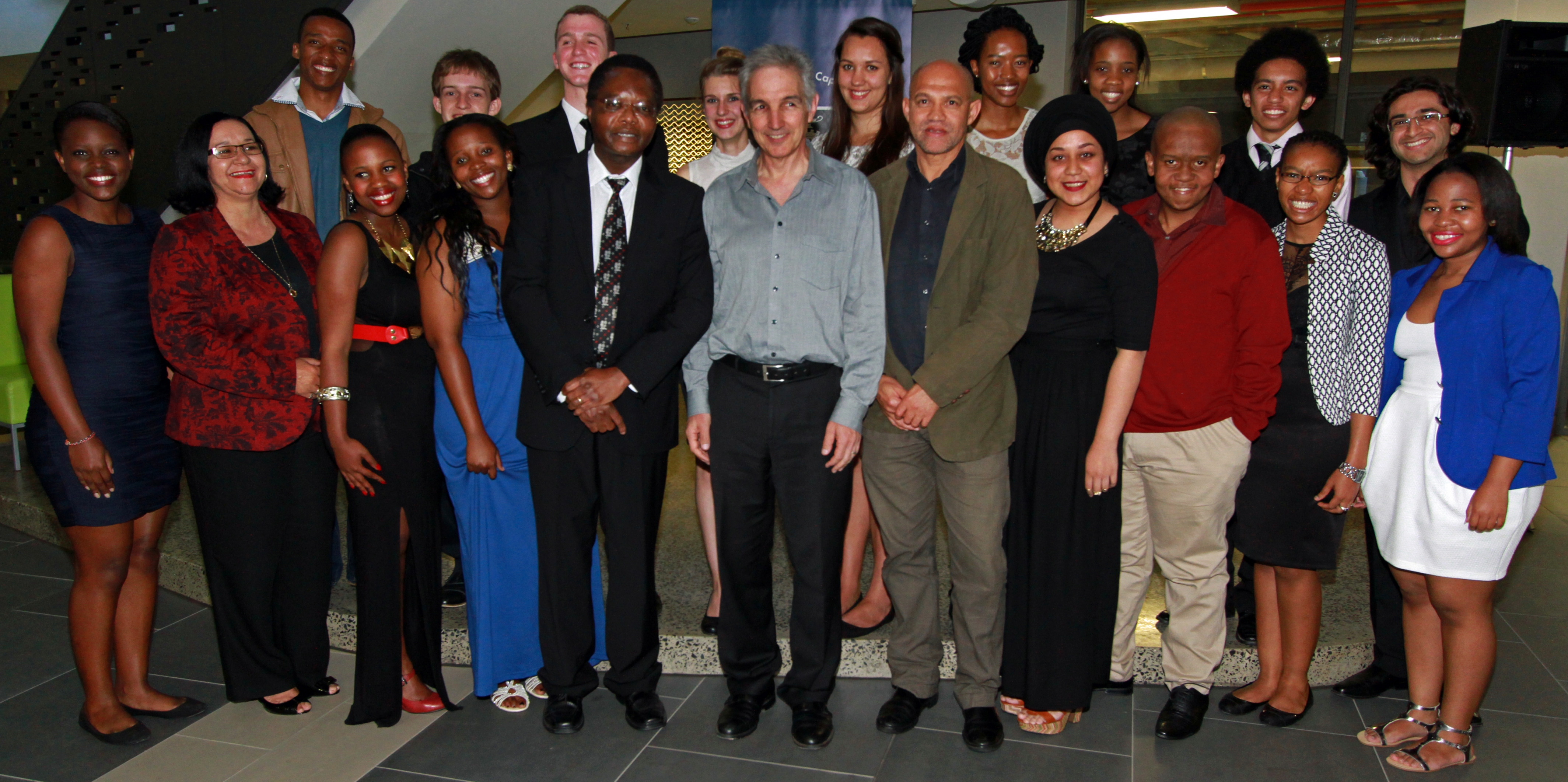 The 16 Klaus-Jürgen Bathe Leadership Programme students pictured here with Dr. Max Price (UCT Vice Chancellor); Professor Alphose Zingoni (Programme Director) and Dr Russell Ally (Director, UCT Development and Alumni Department).