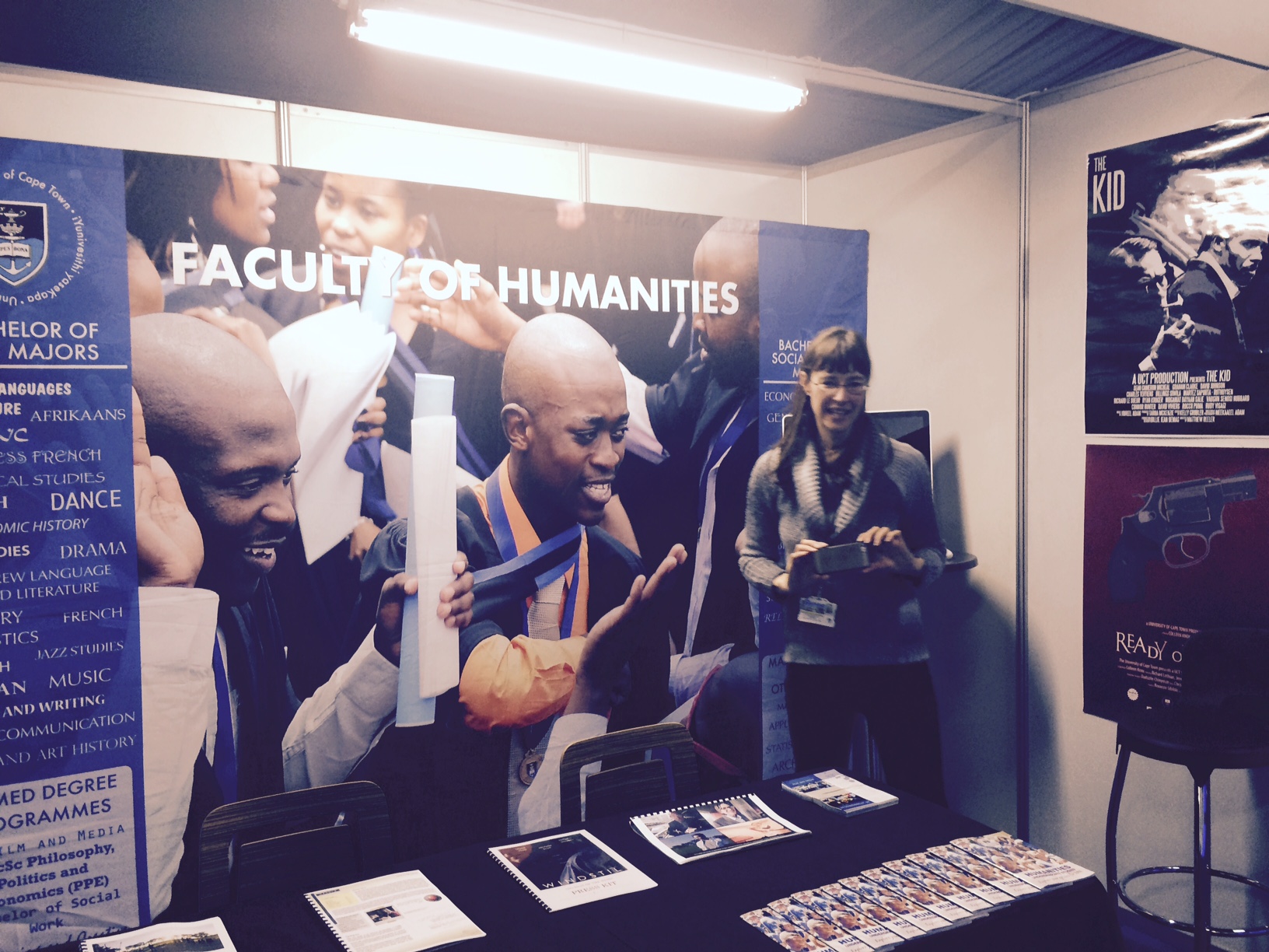 Visitors to the Faculty of Humanities stand were treated to a visual and interactive display featuring some of the current student films compiled at the UCT TV Studios. Questions regarding application and admission points were clarified and students walked away with Humanities ‘Explore Your Options’ handbooks and CFMS pamphlets.