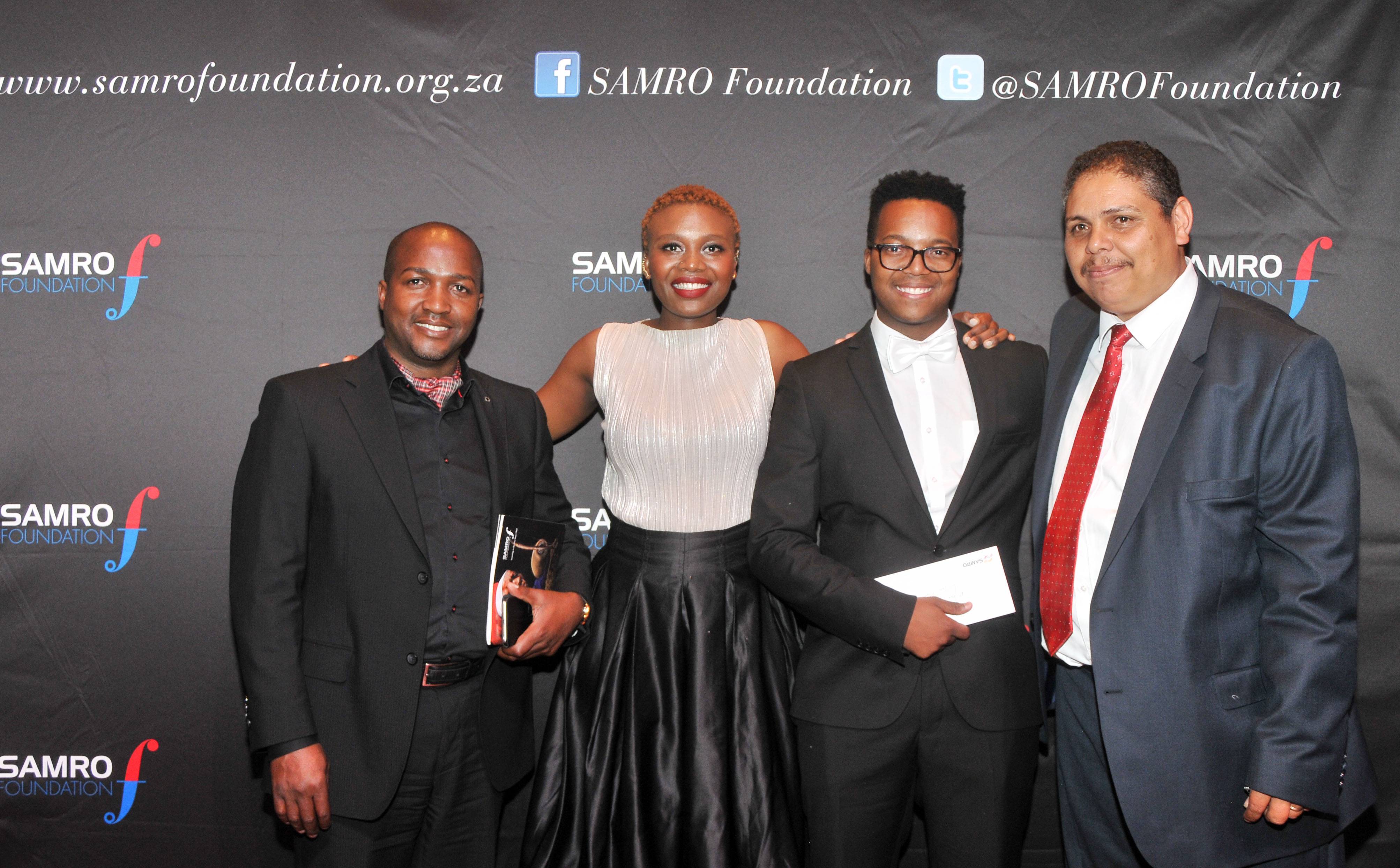Pictured above L-R: Abe Sibiya (Chair SAMRO Board), Zoe Modiga, Levy Sekgapane, Andre le Roux (MD SAMRO Foundation). Photo courtesy Suzy Bernstein.