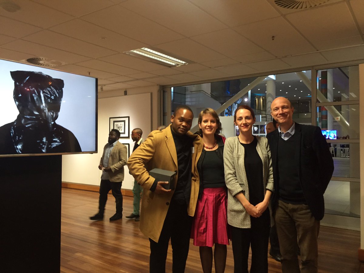 As winner of the Gerard Sekoto Award, he receives a sponsorship package from The Alliance Française, the French Institute and the French Embassy which includes: a return flight ticket to Paris, a three month residency in the Cité Internationale des Arts and a solo exhibition in the Allinace Francais network in South Africa and its partnering galleries. Previous recipients of the Gerard Sekoto Award include: Mongezi Ncaphayi (2013), Bambo Sibiya (2012), Isabel Mertz (2011), Bongumenzi Ngobese (2010); Nyaniso Lindi (2009); Retha Ferguson (2008); Nina Barnett (2007); UCT lecturer Nomusa Makhubu (2006); Lawrence Lemoana (2005); Billie Zangewa (2004). Top 10 competition finalists are also paired with a mentor who will work with them for 12 months.