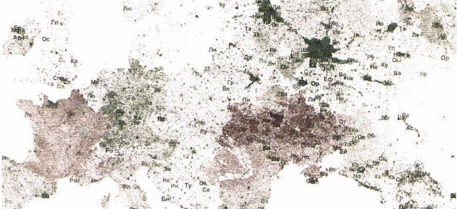 This digital disseminative expediency was further elaborated upon by speakers such as Oremus (2015), whose paper noted the consequent change from local to global means of production brought about by means of the internet, where “the product from the matrix can now exist solely in a virtual world”, be “transmitted digitally and printed in both two and three-dimensional form anywhere around the globe” and “be viewed or even owned by millions”.[xxvii]Using the cartographical concept of the ‘Geo-Code’ as a metaphor to explore not only the consequent shifts in the flows of meaning and appreciation of the print artefact brought about by such mutable boundaries, but also as a means to navigate and map “the contemporary and dynamic space printmaking occupies”, Oremus’s paper outlined several of the works included in the exhibition Geo-Codes: Mapping a Practice in the Post Print Age.[xxviii] [Image below: Gavin Baily and Sarah Bagshaw’s Terra Incognita Series: Codex, a Software Visualization of Wikipedia Language, and part of the Geo-Codes exhibition]