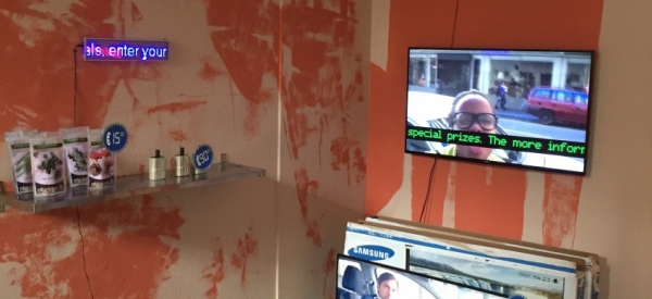 Several works played with humour but were able to address ‘serious’ issues in doing so, for example Will Benedict’s hypothetical music video is part of an installation in a typical corporate boardroom featuring even a sink and mugs between the cream-coloured cupboards. Spectators take a seat at the meeting table to watch on television how an ‘illegal alien’ essentially negotiates with a news anchor his terms for ‘taking over the earth’. Challenging our idea of the ‘other’ I AM A PROBLEM seeks to subvert perceptions of power in relation to our understanding of ‘taking over the world’ – whether it refers to global corporations, social network dominion or the violent nature of colonialism and how comfortably it can sit in the narrative of pop culture. Hito Steyerl’s installation takes the viewer 3 floors below ground level to a cold and damp cement-smelling basement with two video installations on surround-vision flat screens (as if to be in a military headquarters) with a hypothetical corporate proposal of a brand TOWER which ‘takes on outsourced virtual renderings’. Her videos compare zombies to drones and her narratives speak of corporatization of military strategies, global powers and how our everyday activities contribute to the military-industrial complex.
