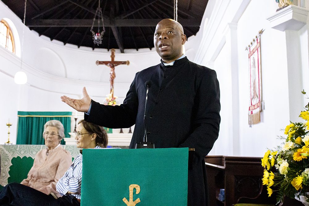 Reverend Mzwabantu Magadla, leader of St Matthews Church, opening proceedings.