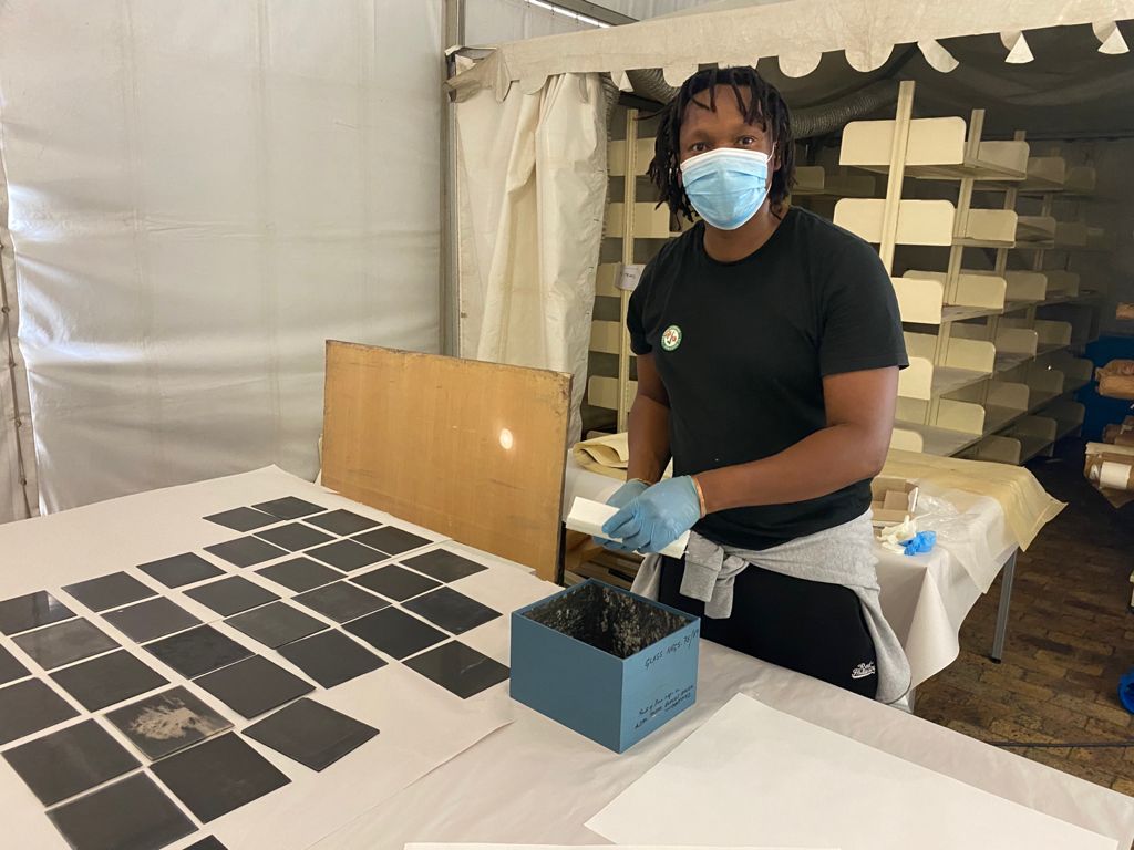 In the conservation tent set up on University Avenue, the many collections that retained water damage on the 18th of April are in the process of being carefully assessed and treated by conservators. Over the weekend, one of the main focus areas were drying a very large collection of photo negatives. Many of these photos are of historical landscapes and formed an integral part of UCT's Plant Conservation Unit's Repeat Photography Project, headed by Prof Timm Hoffman. Hoffman has pioneered the use of repeat photography to document environmental change and his utilisation of these historical landscape photographs is unprecedented in the region.