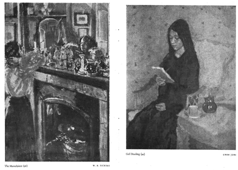 | Walter Sickert's 'The Mantelpiece' (left) and Gwen John's 'Girl Reading' (right) - Pages from the Exhibition of Contemporary British Painting and Drawing (British Council, 1947-1948) |