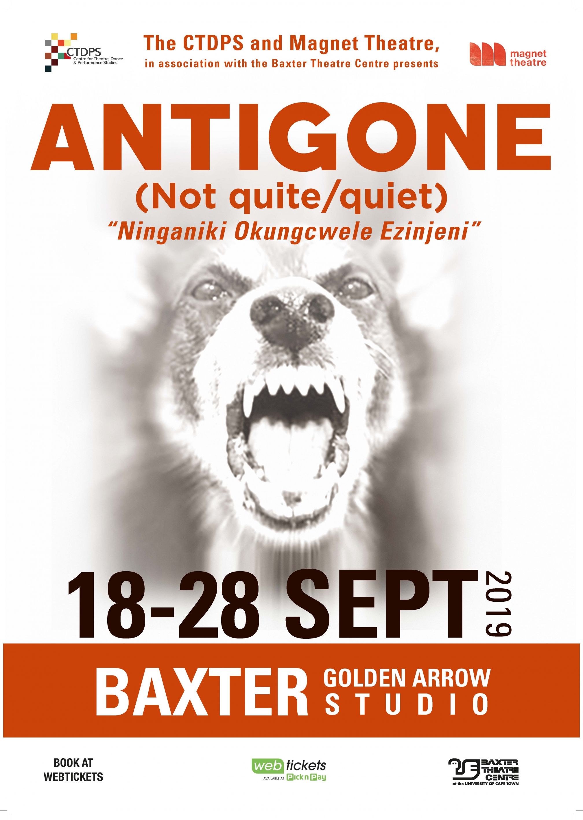 Antigone (not quite/quiet) previews on 18 September, opens on 19 and 20 September and runs for a limited season, at the Baxter Golden Arrow Studio, until 28 September. Performances are at 7.30pm with Saturday matinees at 3pm.