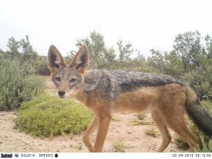 The biological research is being conducted by Marine Drouilly under the supervision of Prof Justin O’Riain (Biological Sciences), and Professors Nicoli Nattrass and Beatrice Conradie from the Centre for Social Science Research (CSSR). Marine has conducted a camera trap survey of bio-diversity on farms and in the nearby reserve of Anysberg. She has also collected jackal and caracal scat and has been capturing and radio-collaring predators. We currently have five radio-collared caracals (Sunshine, Big Paw, Ginger, Lucky and Marina) and four jackals (LeRoy, Rain, Mr Fox and Roocky). LeRoy, to the great interest of farmers, travelled over 1,600 klms in four months!