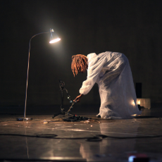 In this report of the Live Art Festival 2018, let me begin at the end with Donna Kukama’s performance-installation We the Not-Not People!-Things Done, not told. Inscribed, not written that showcased a profound historical excavation of the hundred million lives lost during nearly 400 years of enslaving black people, using repetition and sound as uncannily effective tropes--repeating numbers, metallic sounds, crumpling blank paper as if seeking lost records, a white paper dress that Kukama wears initially, that starts ripping half-way through, is removed, revealing her dressed underneath in black leather.