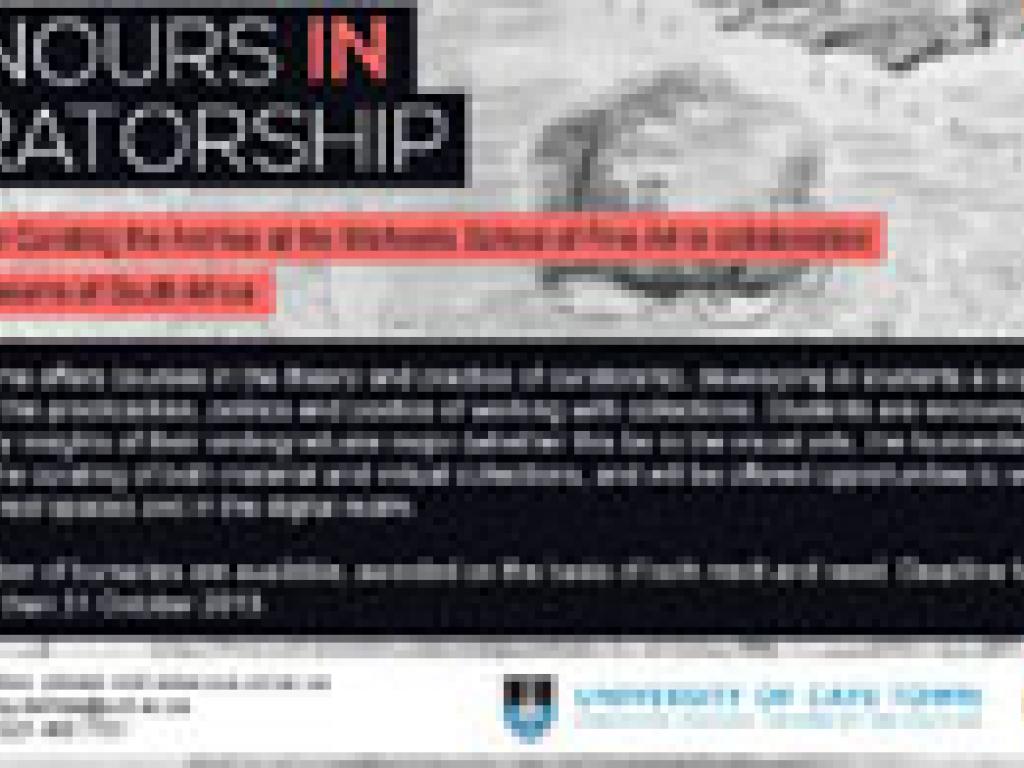 The Honours programme in Curatorship is offered by the Michaelis School of Fine Art’s Centre for Curating the Archive, in close collaboration with Iziko Museums.
