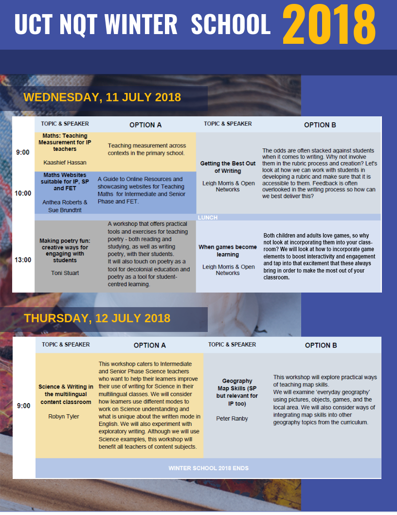 Join us for a time of refuelling and refreshing as experienced educators share effective ways of teaching and approaching learners. Network and enjoy spending time with others in the field of teaching. Add some teacher survival strategies to your teaching practice.
